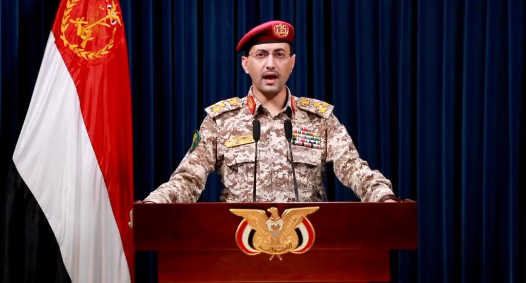 這張4月27日的視頻截圖顯示,也門胡塞武裝發言人葉海亞(ya) ·薩雷亞(ya) 在薩那發表聲明。新華社發