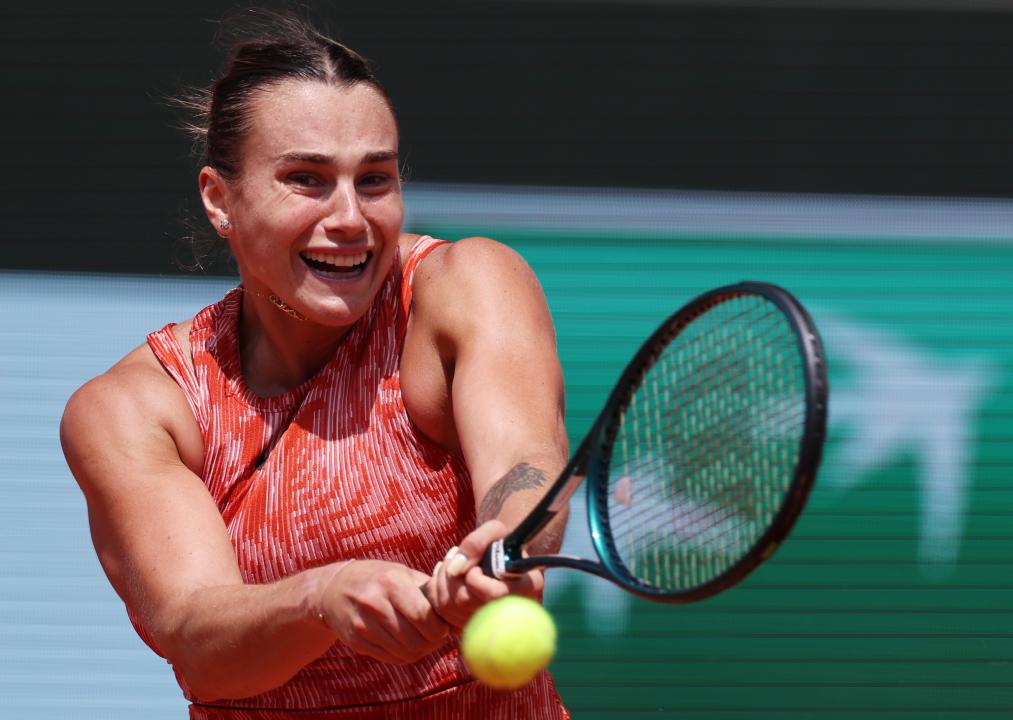 6月3日,薩巴倫(lun) 卡在比賽中回球。新華社記者 高靜 攝