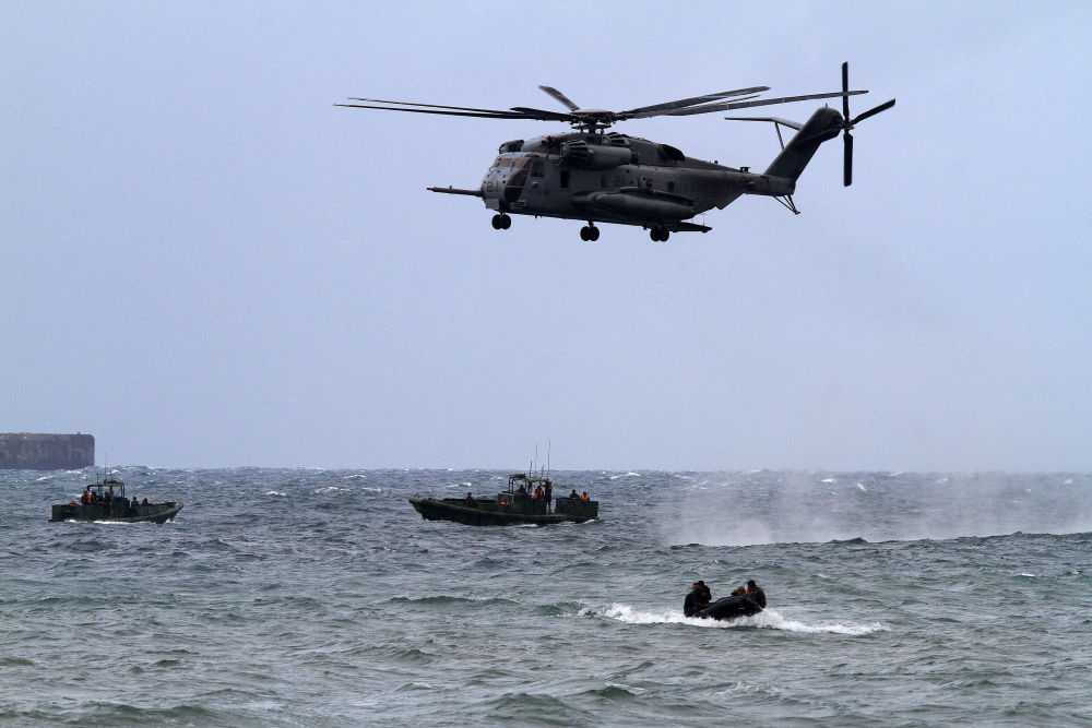 2013年9月20日,在菲律賓甲米地省,一架美軍(jun) CH-53E軍(jun) 用直升機運載美國和菲律賓士兵參加演習(xi) 。新華社發(魯埃勒·烏(wu) 馬利攝)