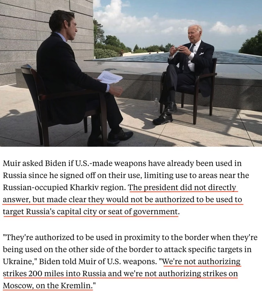 “它們(men) (這些武器)被授權在(烏(wu) 俄)邊境附近使用……我們(men) 沒有授權(烏(wu) 克蘭(lan) )向俄羅斯境內(nei) 200英裏(約合320公裏)的地方發動襲擊,也沒有授權對莫斯科、克裏姆林宮進行打擊。”