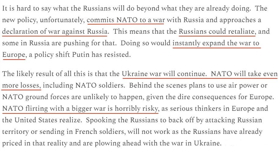 “正如歐美一些嚴(yan) 肅的思考者所認識到的那樣,北約把一場更大的戰爭(zheng) 視如兒(er) 戲是極其危險的行為(wei) 。”