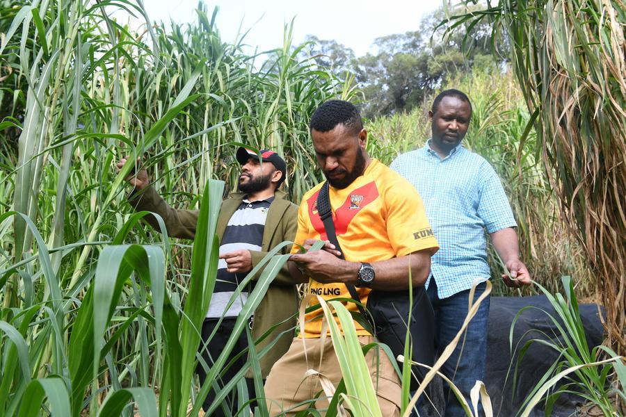 2024年3月28日,在位於(yu) 福州的福建農(nong) 林大學,來自盧旺達和巴布亞(ya) 新幾內(nei) 亞(ya) 的學生在“國際菌草苑”內(nei) 查看菌草長勢。新華社記者 林善傳(chuan) 攝
