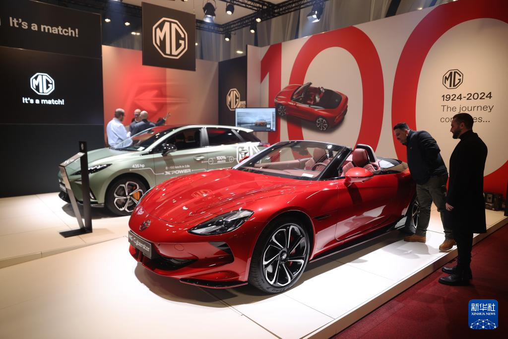 2024年1月17日,人們(men) 在比利時布魯塞爾舉(ju) 辦的2024布魯塞爾汽車展上參觀上汽名爵電動汽車。新華社記者 趙丁喆 攝