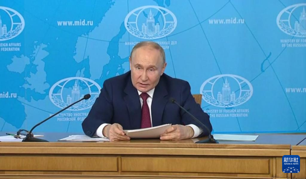 6月14日,在俄羅斯首都莫斯科,俄羅斯總統普京在俄外交部發表講話(視頻截圖)。新華社發