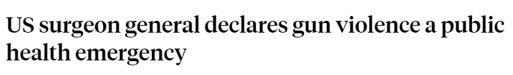 據美國廣播公司(ABC)25日報道,美國衛生局局長維維克·穆西當天宣布,槍支暴力成為(wei) 一場公共衛生危機,原因是涉及槍支的傷(shang) 亡人數快速增長。