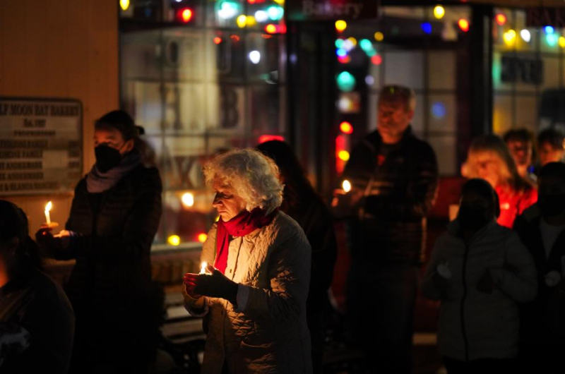 2023年1月31日,在美國加利福尼亞(ya) 州半月灣市,人們(men) 手持蠟燭哀悼槍擊事件遇難者。新華社記者吳曉淩攝