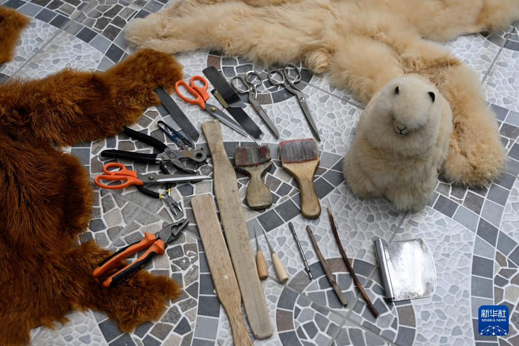 這是6月20日在秘魯阿雷基帕拍攝的羊駝皮毛和手工製作羊駝玩偶所使用的工具。新華社記者 李木子 攝