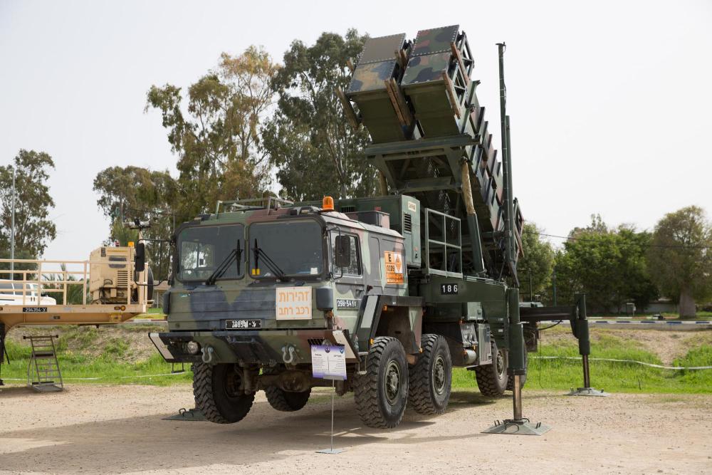 這是2018年3月8日在以色列哈措爾空軍(jun) 基地舉(ju) 行的“杜鬆眼鏡蛇2018”聯合反導軍(jun) 演上拍攝的“愛國者”導彈防禦係統。新華社記者郭昱攝