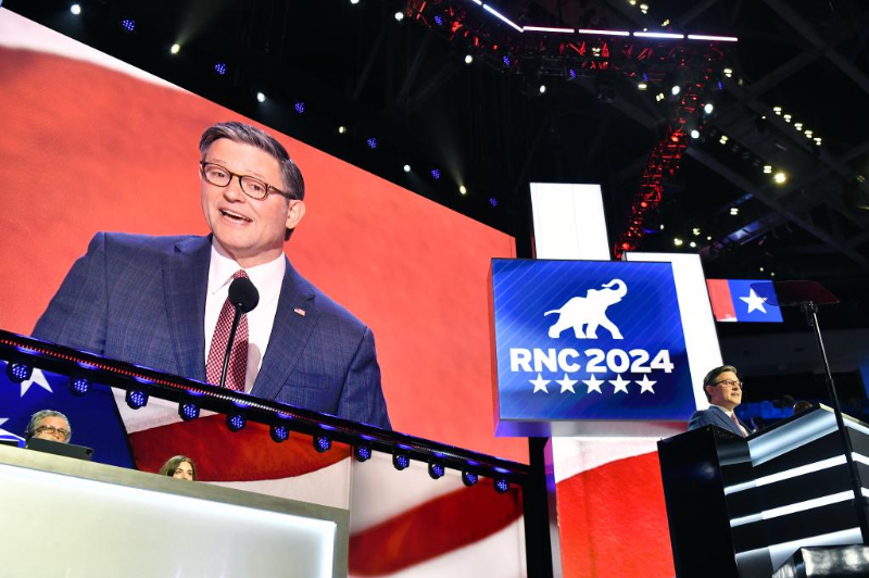 7月15日,在美國密爾沃基舉(ju) 行的共和黨(dang) 全國代表大會(hui) 上,美國國會(hui) 眾(zhong) 議院共和黨(dang) 籍議長邁克·約翰遜正式宣布提名特朗普和萬(wan) 斯為(wei) 共和黨(dang) 總統和副總統候選人。新華社記者李睿攝