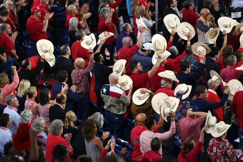 特朗普右耳包著繃帶,15日出現在大會(hui) 現場時,共和黨(dang) 代表們(men) 紛紛起立,發出熱烈歡呼。按美國媒體(ti) 說法,當時是特朗普被正式提名的“數小時後”。