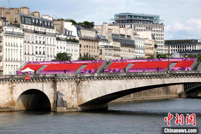 當地時間7月21日,巴黎奧運會(hui) 開幕在即,圖為(wei) 塞納河上的觀眾(zhong) 席。 中新社記者 富田 攝