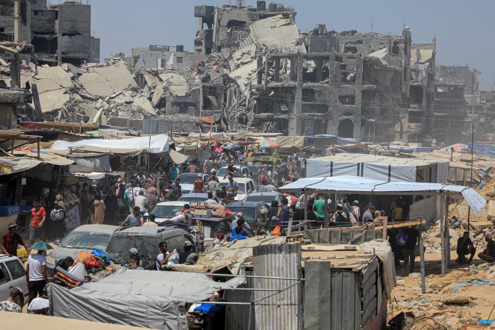 7月22日,在加沙地帶南部城市汗尤尼斯,人們(men) 逃離家園。巴勒斯坦加沙地帶衛生部門22日說,以色列軍(jun) 隊當天轟炸汗尤尼斯,造成至少70人死亡、超過200人受傷(shang) 。新華社發(裏澤克·阿卜杜勒賈瓦德攝)