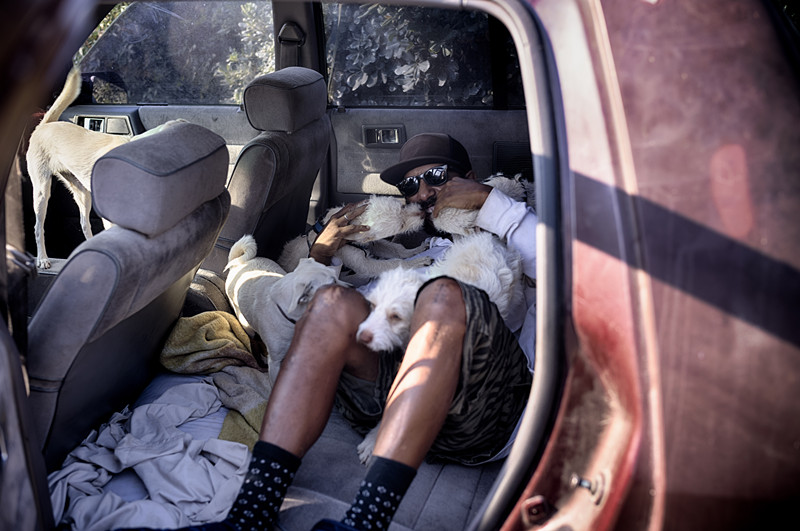 洛杉磯的一名無家可歸者和他的6隻狗住在車裏(資料圖)
