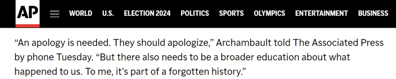 “道歉是必要的,他們(men) 應該道歉。而我們(men) 也需要對發生在我們(men) 身上的事情進行更廣泛的教育。對我來說,這是一段被遺忘的曆史。”