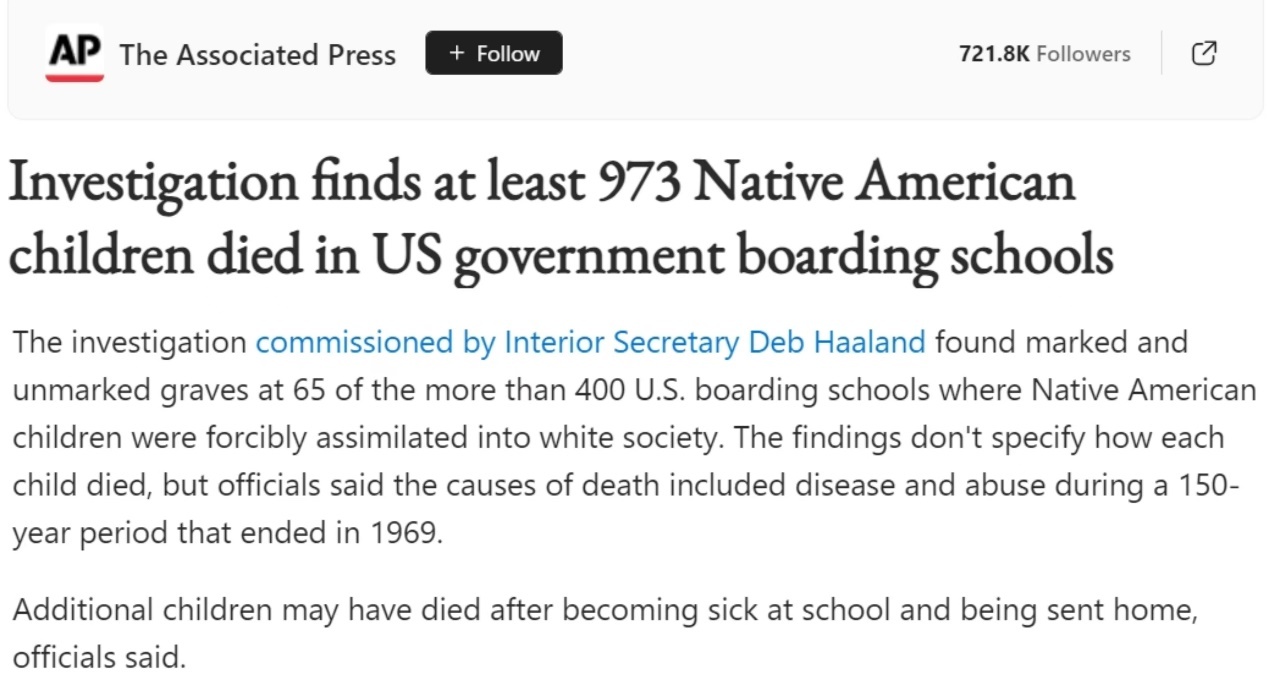 雖然最新公布的報告很不完整,但它再次揭開了美國印第安寄宿學校的原罪瘡疤。