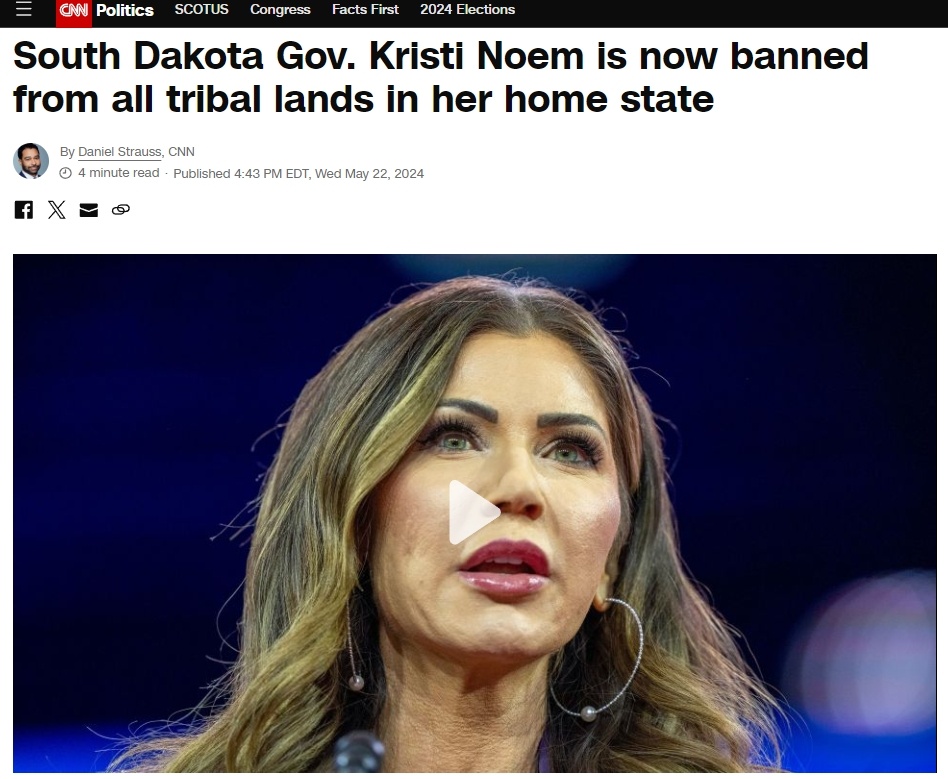 由於(yu) 不滿諾姆屢次發表歧視性言論,南達科他州全部9個(ge) 印第安人保留地先後投票表決(jue) ,宣布“驅逐”這名女政客。