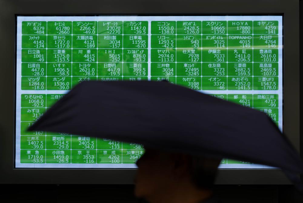 8月2日,在日本東(dong) 京,行人經過一處股指信息電子顯示屏。新華社記者張笑宇攝