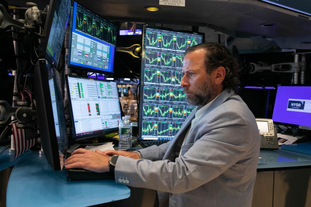 5月3日,交易員在美國紐約證券交易所交易大廳工作。新華社發(郭克攝)