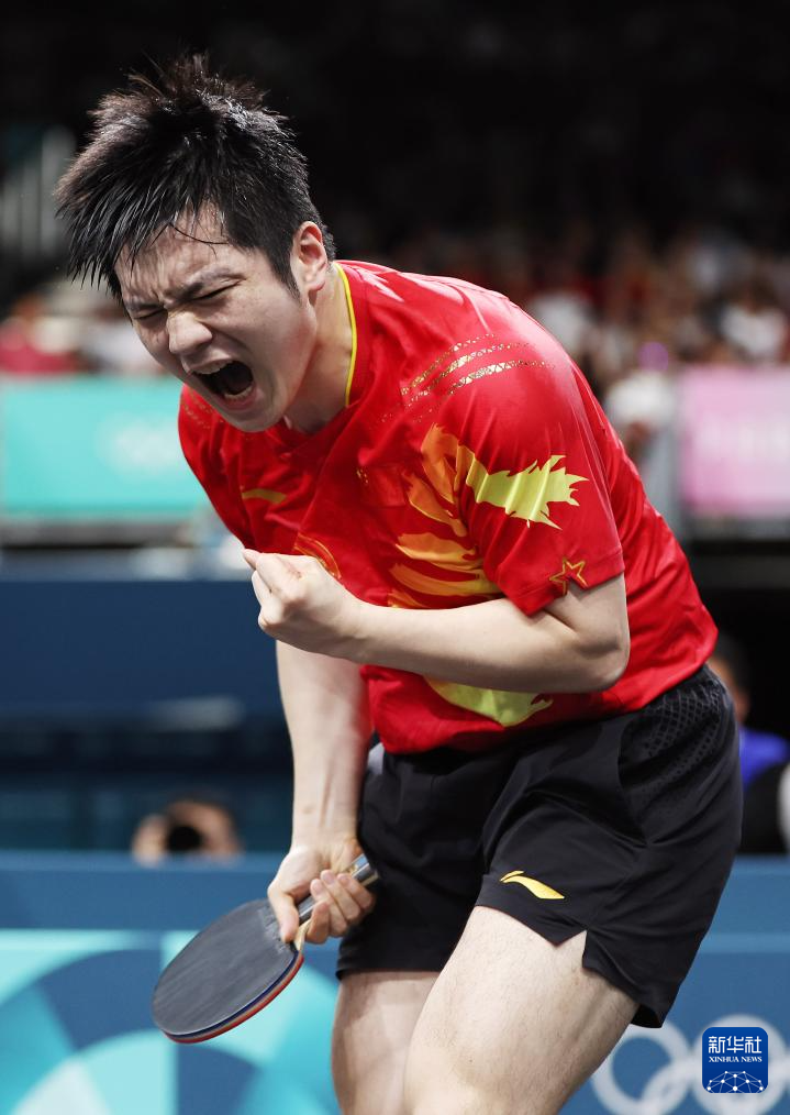 8月9日,王楚欽在獲勝後慶祝。新華社記者 王東(dong) 震 攝