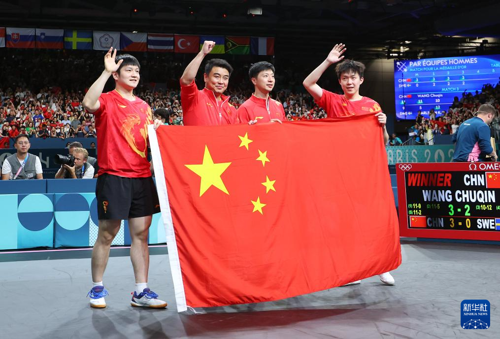 當日,在巴黎奧運會(hui) 乒乓球男團金牌賽中,中國隊戰勝瑞典隊,獲得冠軍(jun) 。