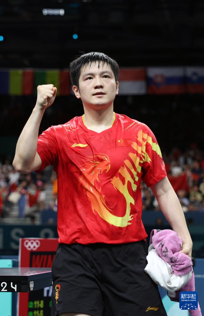 8月9日,樊振東(dong) 在獲勝後慶祝。新華社記者 劉續 攝