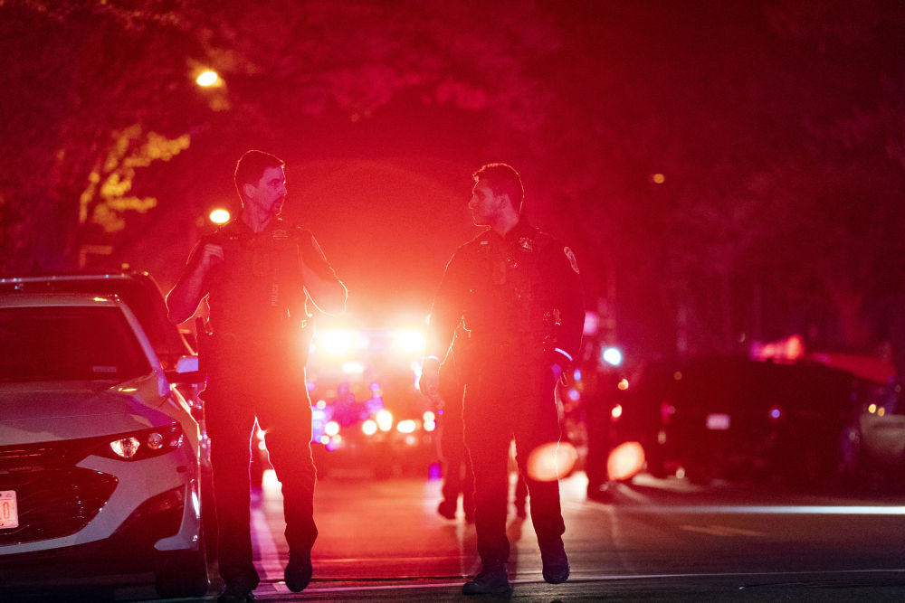 2022年4月22日,警察在美國首都華盛頓西北部一處街區發生的槍擊事件現場工作。新華社記者劉傑攝
