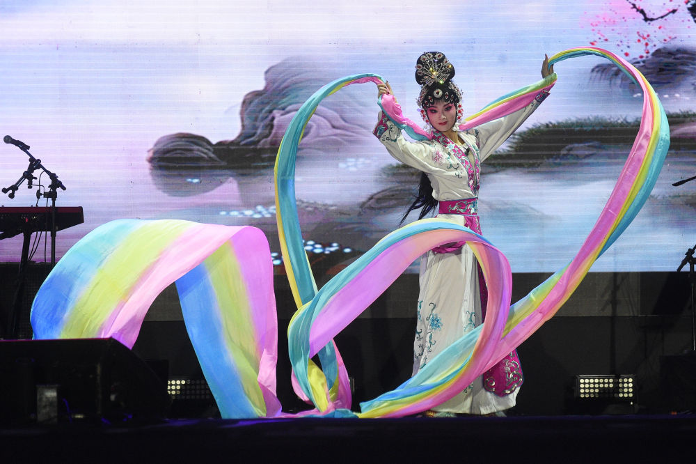 8月17日,在巴西首都巴西利亞(ya) ,來自浙江婺劇藝術研究院的演員在沙灘藝術節中國日活動上表演。