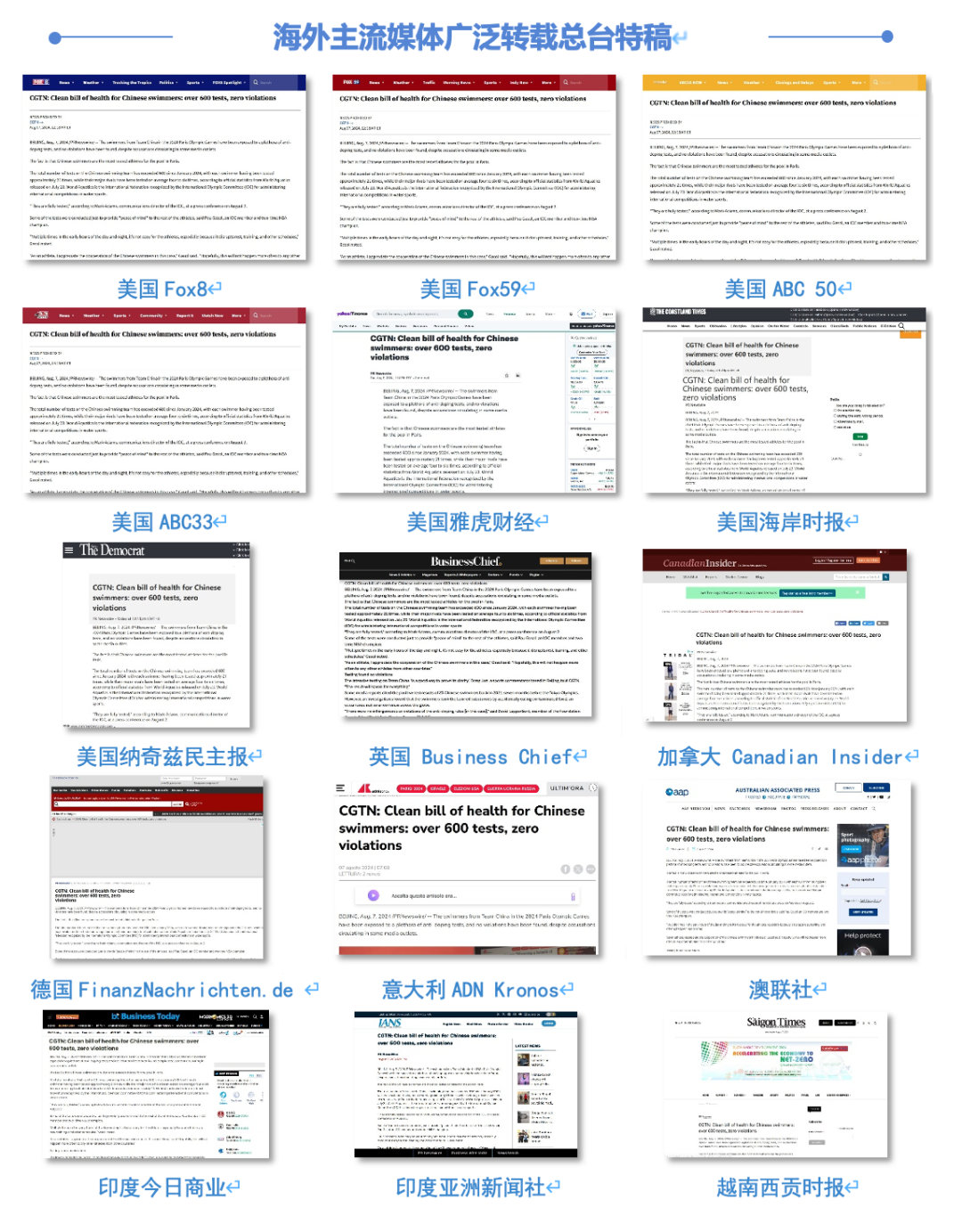 針對美西方借興(xing) 奮劑抹黑中國這一議題,總台多語種對外傳(chuan) 播平台與(yu) 海外總站、國際視頻通訊社緊密聯動,通過全球媒體(ti) 夥(huo) 伴網絡,不斷放大正義(yi) 的音量。僅(jin) 在3天內(nei) ,就有1800餘(yu) 家海外主流媒體(ti) 積極轉載總台多語種特稿,創下短時傳(chuan) 播新紀錄,引發國際輿論高度關(guan) 注和強烈反響。