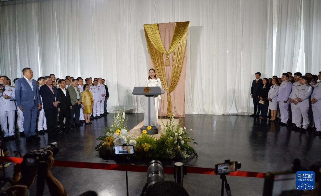 8月18日,新任泰國總理佩通坦·欽那瓦在曼穀出席新聞發布會(hui) 。 新華社發(拉亨攝)