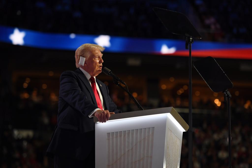 7月18日,美國前總統特朗普在密爾沃基的共和黨(dang) 全國代表大會(hui) 上發表演講。新華社記者李睿攝