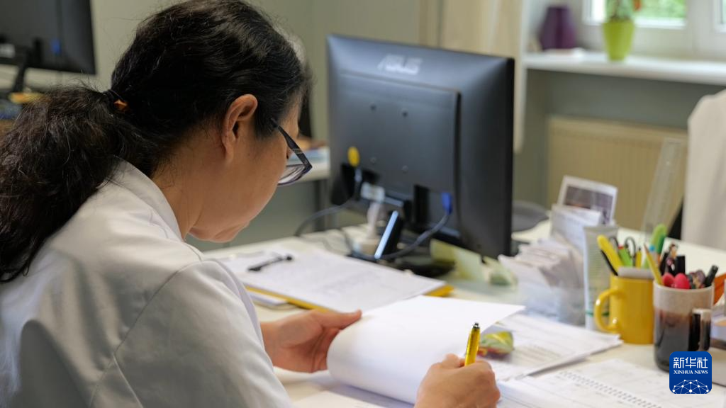 7月11日,在德國巴伐利亞(ya) 州巴德魁茨汀,北京中醫藥大學魁茨汀醫院的中醫醫生在記錄病患信息。 新華社記者 賈金明 攝