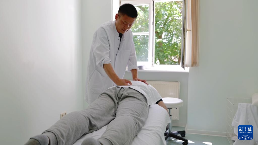 7月11日,在德國巴伐利亞(ya) 州巴德魁茨汀,北京中醫藥大學魁茨汀醫院的中醫醫生幫病人進行推拿治療。 新華社記者 賈金明 攝