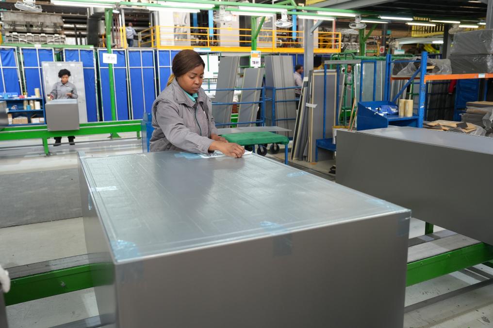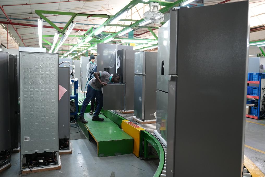 8月14日,在南非開普敦,當地員工在海信南非工業(ye) 園的冰箱生產(chan) 線上工作。新華社記者王雷攝