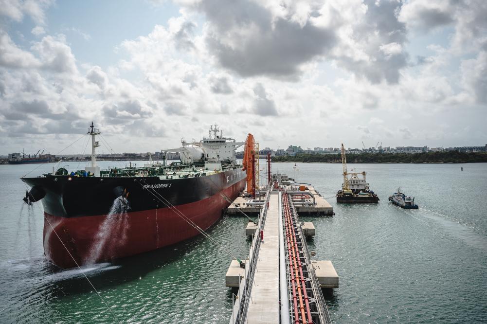 這是8月15日拍攝的位於(yu) 肯尼亞(ya) 蒙巴薩港的蒙巴薩油碼頭。新華社記者王冠森攝