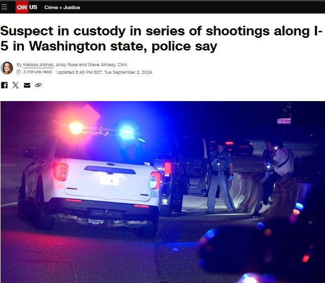 報道稱,當地時間3日,華盛頓州巡警隊長羅恩·米德在新聞記者會(hui) 上稱,已有四起槍擊案的受害者確認了嫌疑人所乘車輛。