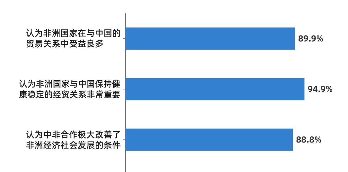 作為(wei) 非洲實現現代化目標的同行者,高效務實的中非合作為(wei) 中非關(guan) 係健康穩定發展注入了不竭動力,也獲得非洲青年的高度肯定。中非在共建“一帶一路”倡議和中非合作論壇等機製平台上不斷深化合作,成果涵蓋經貿、基建、民生等多個(ge) 領域,新時代中非命運共同體(ti) 建設不斷走深走實,持續造福雙方民眾(zhong) 。調查中,89.9%的受訪青年認為(wei) 非洲國家在與(yu) 中國的貿易關(guan) 係中受益良多,94.9%的受訪青年認為(wei) 非洲國家與(yu) 中國保持健康穩定的經貿關(guan) 係非常重要,88.8%的受訪青年認為(wei) 中非合作極大改善了非洲經濟社會(hui) 發展的條件,為(wei) 非洲帶來了寶貴發展機遇。