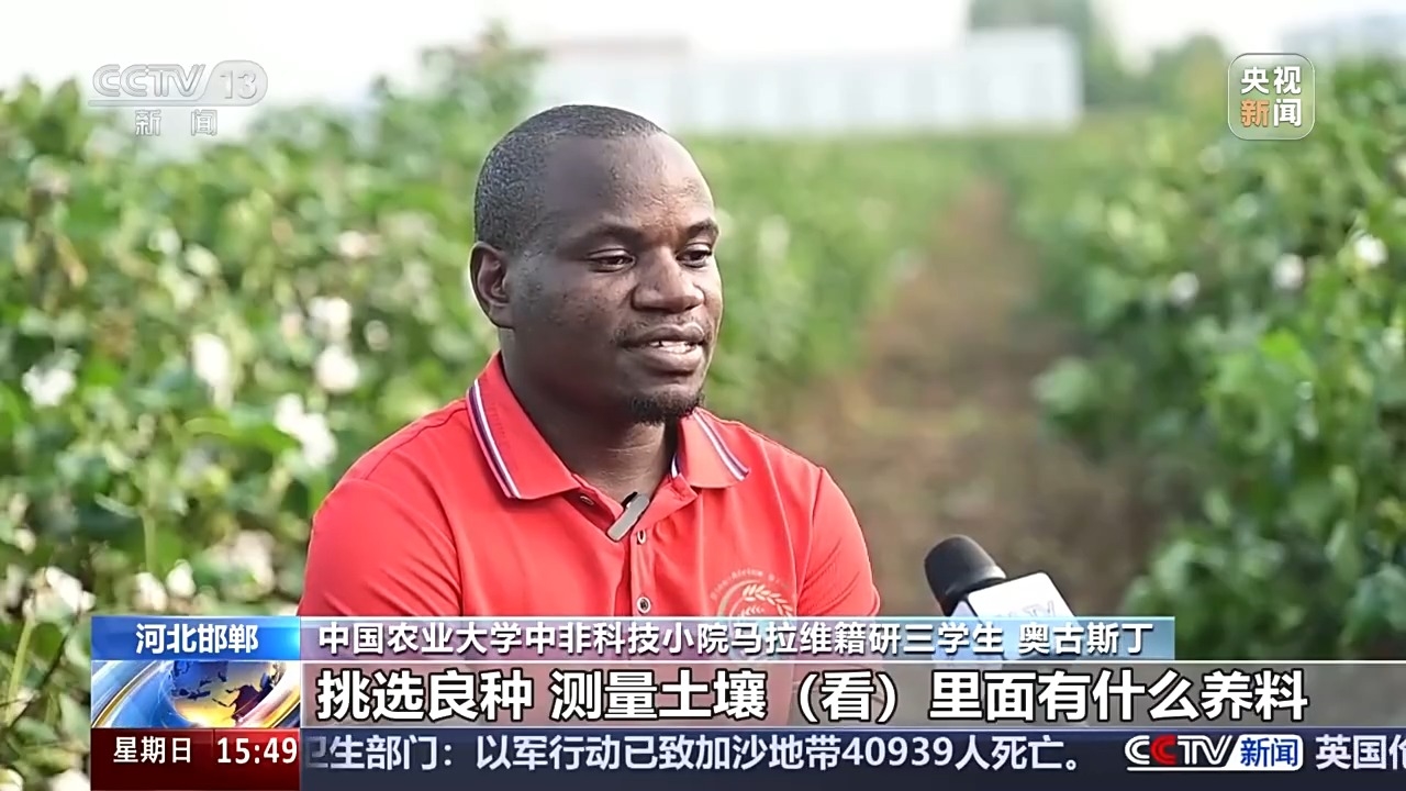 中國農(nong) 業(ye) 大學中非科技小院馬拉維籍研一學生 馬達:未來我也希望回國發展大農(nong) 場,高效種植農(nong) 業(ye) ,保障國家糧食安全。馬拉維政府正鼓勵發展大農(nong) 場,對我來說是個(ge) 巨大機會(hui) 。中國是非洲很好的榜樣,我非常感恩能來中國。