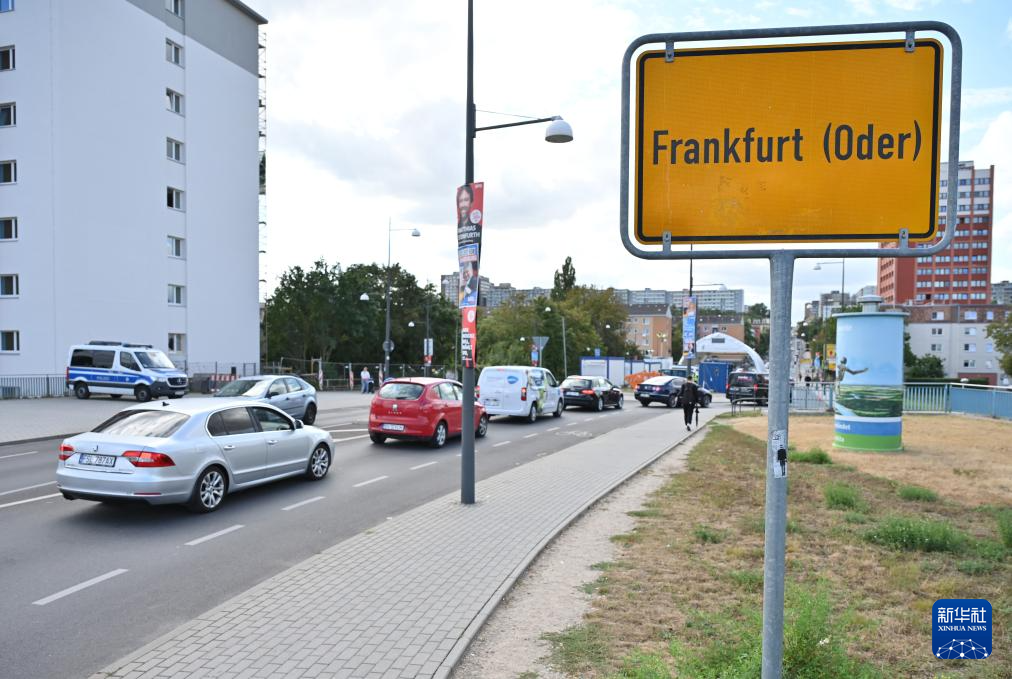 9月10日,在位於(yu) 德國和波蘭(lan) 邊境的德國城市奧得河畔法蘭(lan) 克福,警察在邊檢站執勤。新華社記者 任鵬飛 攝