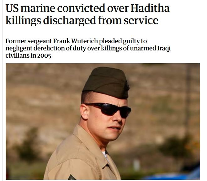 包括烏(wu) 特裏奇在內(nei) 的多名海軍(jun) 陸戰隊員被指控犯有謀殺罪。然而,其中三起案件最終被駁回。烏(wu) 特裏奇則達成認罪協議,承認一項“疏忽失職”的罪名,軍(jun) 銜降職並結束服役。