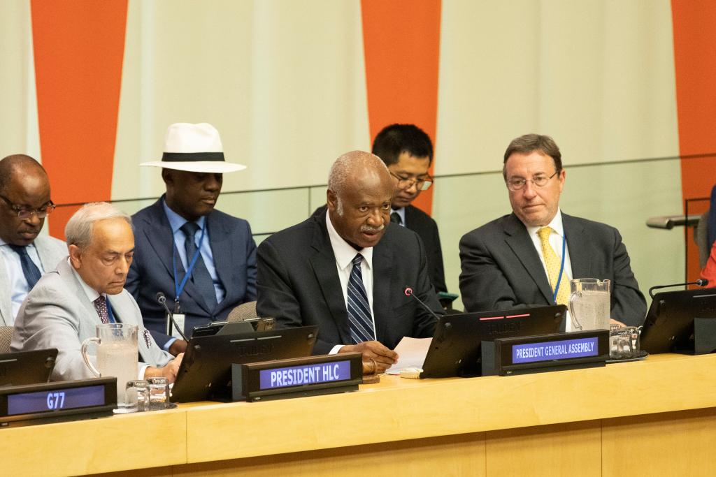 9月12日,在位於(yu) 紐約的聯合國總部,第79屆聯合國大會(hui) 主席菲勒蒙·揚(前排中)在聯合國南南合作日高級別討論會(hui) 上致辭。新華社記者 謝鍔 攝