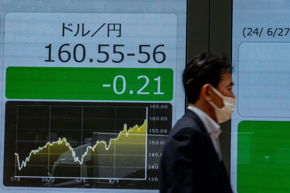 6月27日,行人走過日本東(dong) 京一處顯示實時匯率的電子屏幕。新華社記者張笑宇攝