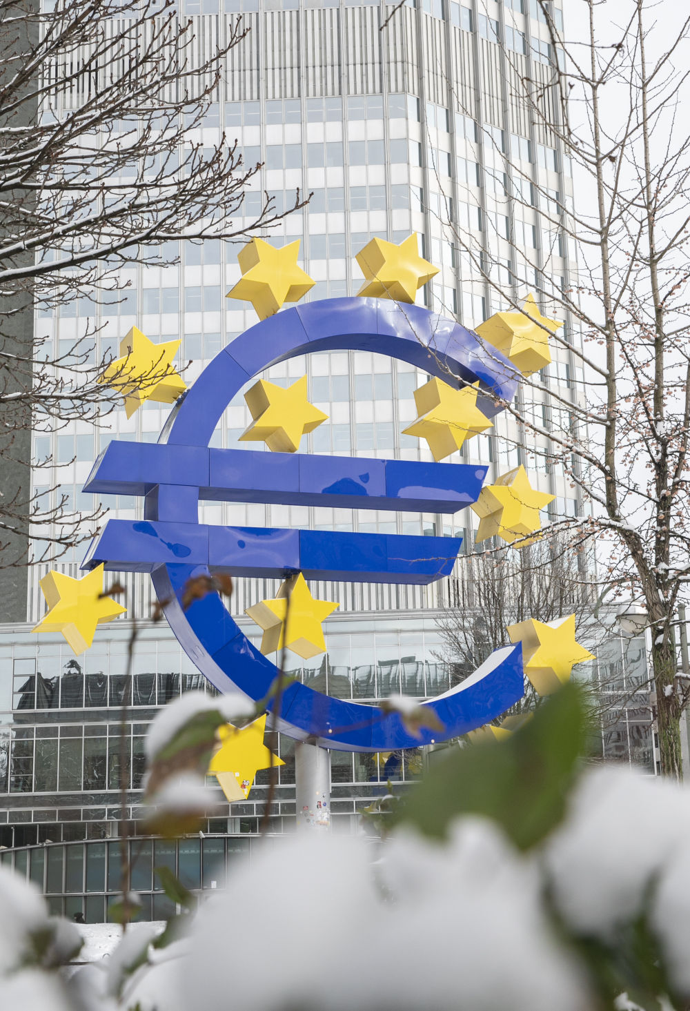 這是1月18日在德國法蘭(lan) 克福拍攝的歐元標識。新華社記者張帆攝