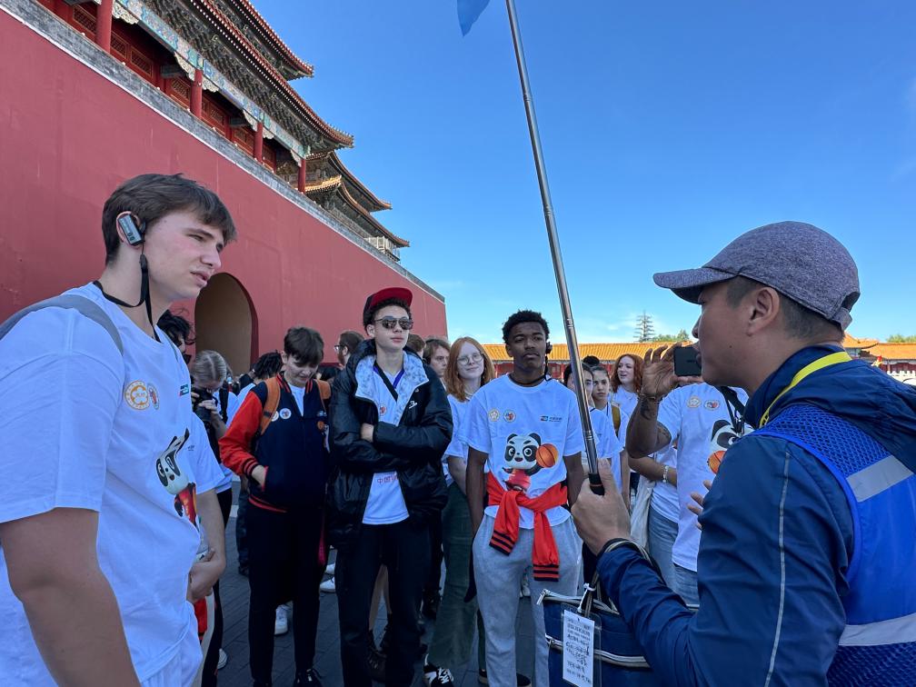 來自華盛頓州體(ti) 育場中學的切斯·戈登讀過不少與(yu) 中國相關(guan) 的書(shu) 籍。終於(yu) 踏足北京故宮的他難掩興(xing) 奮,一路緊隨導遊,連連發問。當得知太和殿前的銅龜、銅鶴腹為(wei) 空心,放上香料後,煙自它們(men) 嘴裏吐出,他驚訝地高呼:“這真是古代的高科技!”