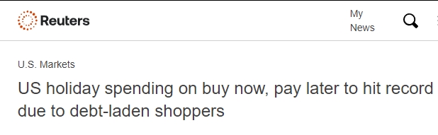據英國路透社報道,數據分析公司Adobe Analytics 25日發布的預測顯示,今年第四季度美國消費者通過第三方“先買(mai) 後付”服務平台進行假日購物的花費預計將達到創紀錄的185億(yi) 美元。該公司表示,由於(yu) 許多美國人最近背負了更多的債(zhai) 務,與(yu) 去年假期相比,今年假期期間用於(yu) “先買(mai) 後付”服務的支出將增加11.4%。
