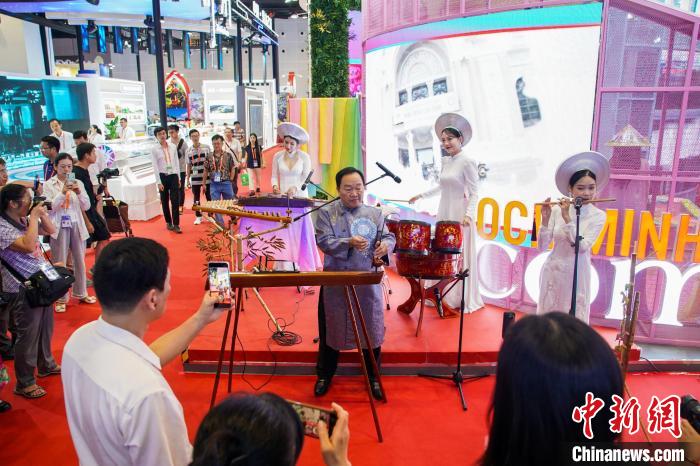 第21屆中國—東(dong) 盟博覽會(hui) 於(yu) 9月24日至28日在廣西南寧舉(ju) 行。圖為(wei) 越南民族樂(le) 器表演吸引參觀者。陳冠言 攝