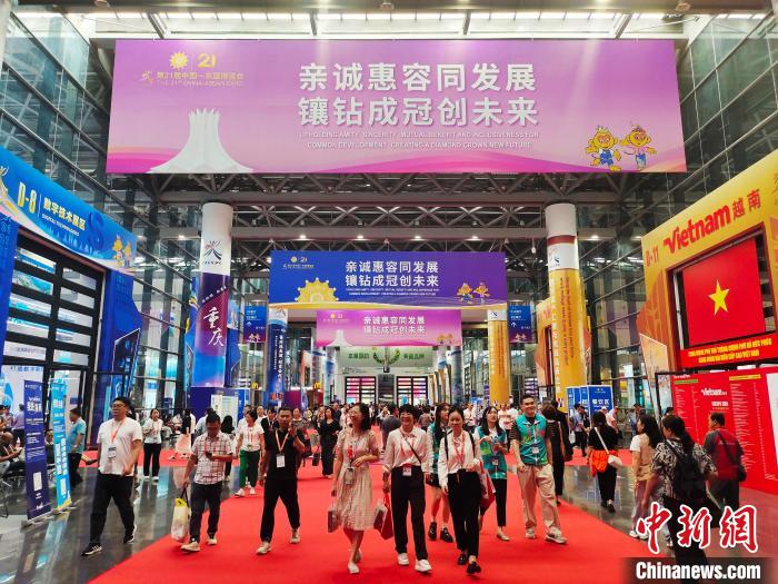 9月26日,在廣西南寧國際會(hui) 展中心,民眾(zhong) 在參觀第21屆中國—東(dong) 盟博覽會(hui) 展區。中新社記者 黃豔梅 攝