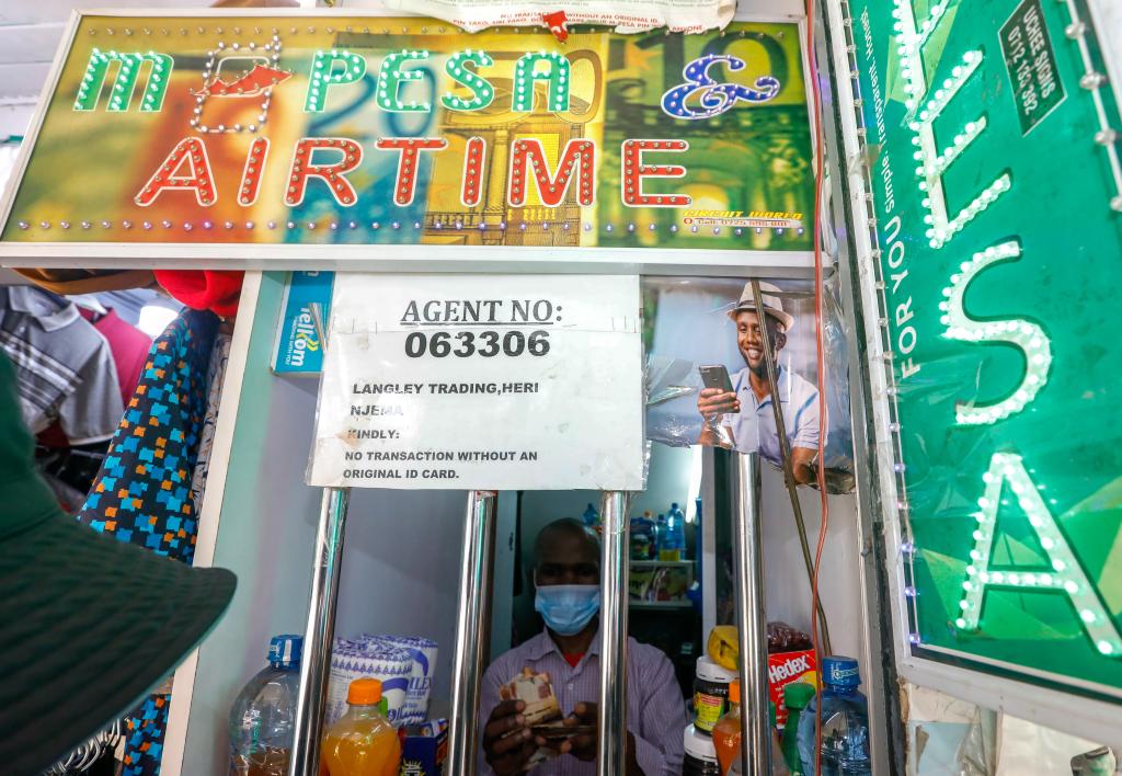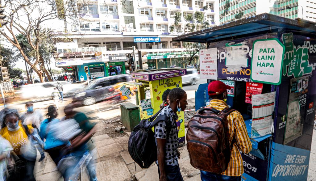 2021年9月16日,人們(men) 在肯尼亞(ya) 首都內(nei) 羅畢市中心一處M-Pesa代理網點辦理業(ye) 務。新華社記者張宇攝