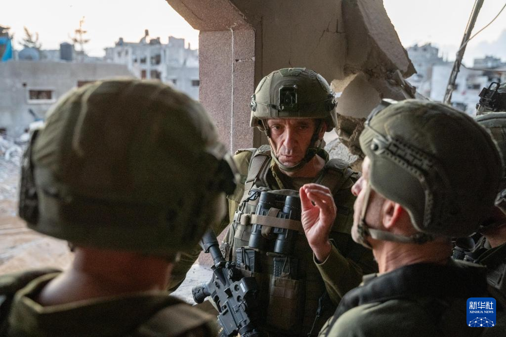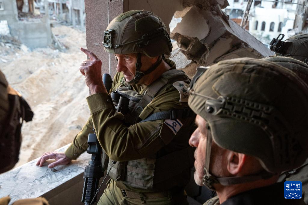 10月17日,以色列國防軍(jun) 總參謀長哈萊維(中)在加沙地帶辛瓦爾死亡地點附近視察。新華社發(以色列國防軍(jun) 供圖)
