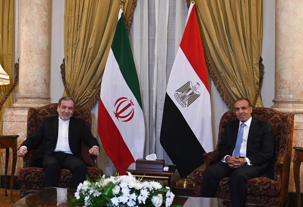 10月17日,埃及外長阿卜杜勒阿提(右)在首都開羅會(hui) 見來訪的伊朗外長阿拉格齊。新華社發(賽義(yi) 德·穆罕默德攝)