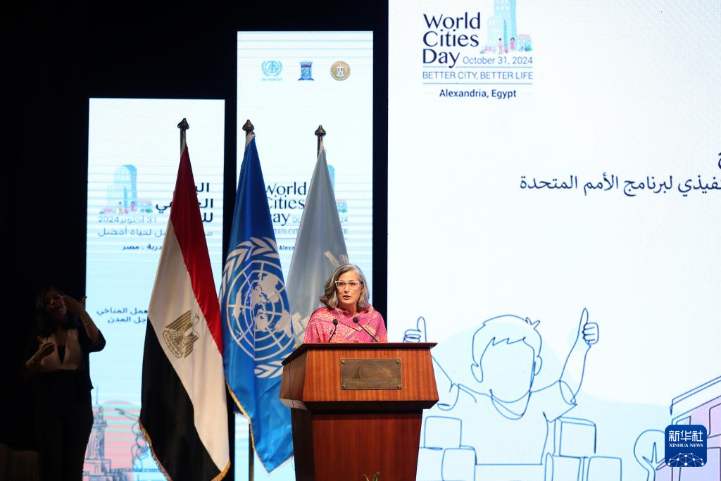 10月31日,在埃及亞(ya) 曆山大,聯合國人居署執行主任阿納克勞迪婭·羅斯巴赫在活動上致辭。新華社記者 王東(dong) 震 攝